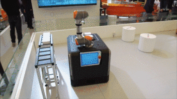 系统成功读取奖券条码后,发出指令,复合型机器人前往货架,机械臂抓取相应奖品。抓取奖品后,途中精准避障,最后将奖品放入指定滑槽中。此时,您的奖品已到面前,请查收哦!