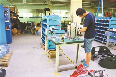 ▲工程师正在装配研发的新一代用于AGV的举升机构。