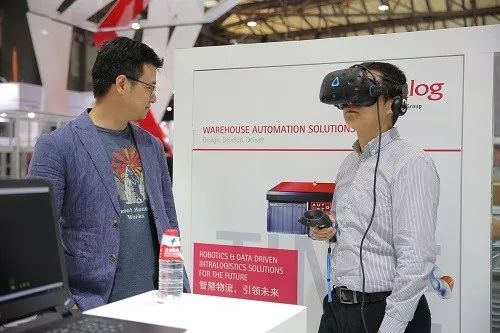瑞仕格的展台以丰富多样的动态仓储系统、炫酷的机器人拣选方案与高科技未来感的VR & AR虚拟体验区吸引众多观众的围观。