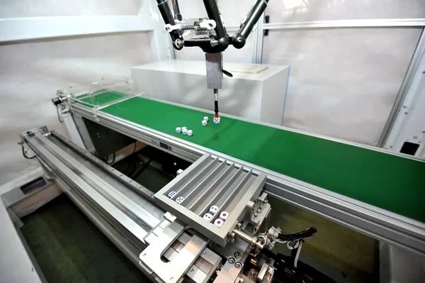 机器人通过视觉系统来定位无序的骰子,并将骰子按照点数整齐的码放在相应的位置,实现高速拾取的同时对多种产品进行分类。展示了并联机器人视觉识别、高速跟踪定位和整齐码垛功能。最大拾取速度达到100次/分钟。