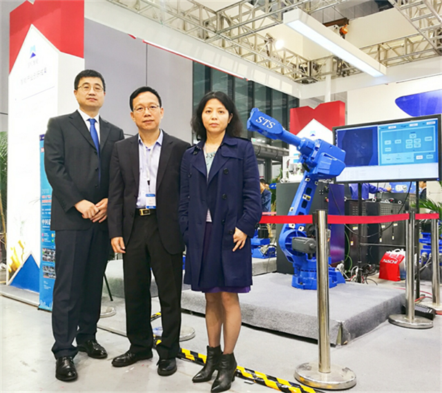 黄兴董事长、范清副总经理与西门子(中国)数字化工厂集团机器人技术中心总经理卓越博士共同见证国机智能与西门子合作成果展出