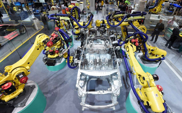 在2017年第一季度,北美制造商在工业上机器人上花费了5.16亿美元,比去年同期增长32%。布鲁金斯学会(Brookings Institution)发表研究表示,他们中许多在钢铁和汽车制造业中心,如印第安纳、密歇根州和俄亥俄州。根据这份报告,在托莱多和底特律,大约每1000名工人中就有9个工业机器人,是2010年的3倍。很多这样的机器人都是发那科的。它的机器也在特斯拉(Tesla Inc .)位于内华达州的Giga工厂,它可以举起沉重的底盘,精巧地组装电池盘。与此同时,它的分类机器人在亚马逊公司(Amazon.com Inc .)庞大的仓储和运输设施中随处可见。