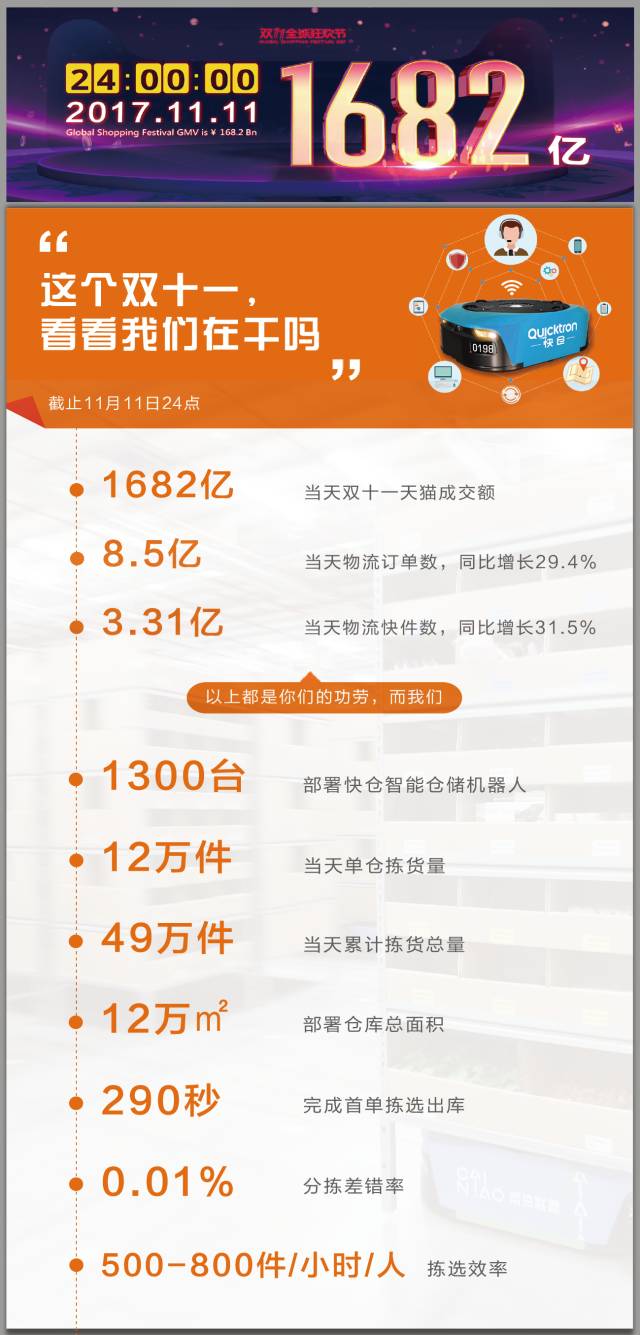 此次“剁手节“,快仓以提供专业、科技、可靠的智能系统解决方案及产品为已任,以超越用户需求为企业生存价值,高效强大的项目团队以保证各项目现场的实施稳定运营。