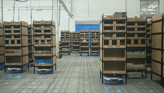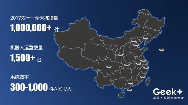 Geek+部署的位于广东唯品会仓库,于双11期间上百台机器人共同作业,仅双11当天就完成近10万订单发货,刷新了仓储机器人出货效率的记录。