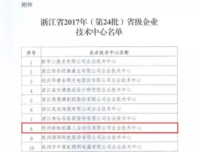 近日,经企业自主申报、市经信主管部门初审推荐、第三方初评、专家答辩、综合评分和公示,省经信委、省国税局、省地税局和杭州海关等5部门审定,认定“杭州新松机器人自动化有限公司企业技术中心”为省级企业技术中心。