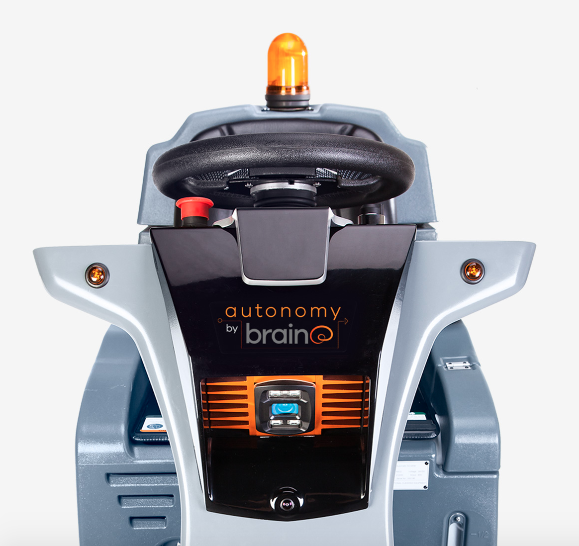从外观来看,这台清扫机器人可以容纳一个成年人坐在驾驶位,通过正前方的方向盘掌握行进方向。不过,在大多数工作时间是不需要人看管的。