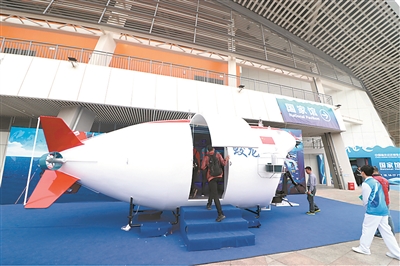 在国家馆门口,“蛟龙号”模型尤引人瞩目,市民游客纷纷上前观看、合影。