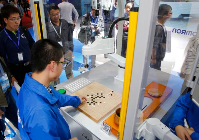 此次欧姆龙展区分为四块:互动区,控制技术区,机器人系统、包装整体解决方案,在互动区有人机对抗五子棋,让AI人工智能与机器人控制相结合。