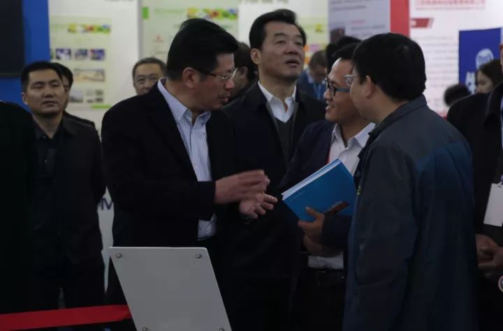 展会首日上午江苏省人民政府副秘书长王志忠一行莅临“华天视航”展馆参观指导!销售经理李中华向各位领导介绍了我公司的参展产品,详述了华天视航AGV在市场的优势与发展前景。各领导皆对于我们的AGV表示肯定,智能化全自动无人搬运小车AGV很好的契合各企业对厂内自动化物流管理的需求能为企业节省大量的人工成本。