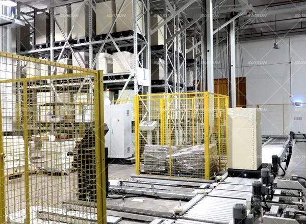 项目实施中,新松针对客户现场现有狭长的厂房布局,自主设计新型灵动型指式货叉堆垛机——该型号堆垛机可以通过控制系统自动调整货叉实现库房快速、兼容多种尺寸货物存取需求。解决了传统立库内单一巷道内无法同时兼容多种尺寸托盘的问题,极大的降低了企业的设备采购成本。