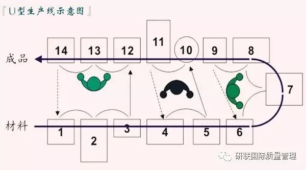 而在U型布置中,生产线摆放如U型,一条流水线的出口和人口在相同位置,一个加工位置中可能同时包含几个工艺,所以U型布置需要培养多能工。它减少了步行浪费和工位数,从而缩短周期、提高效率,同时也减少了操作工,降低了成本等。