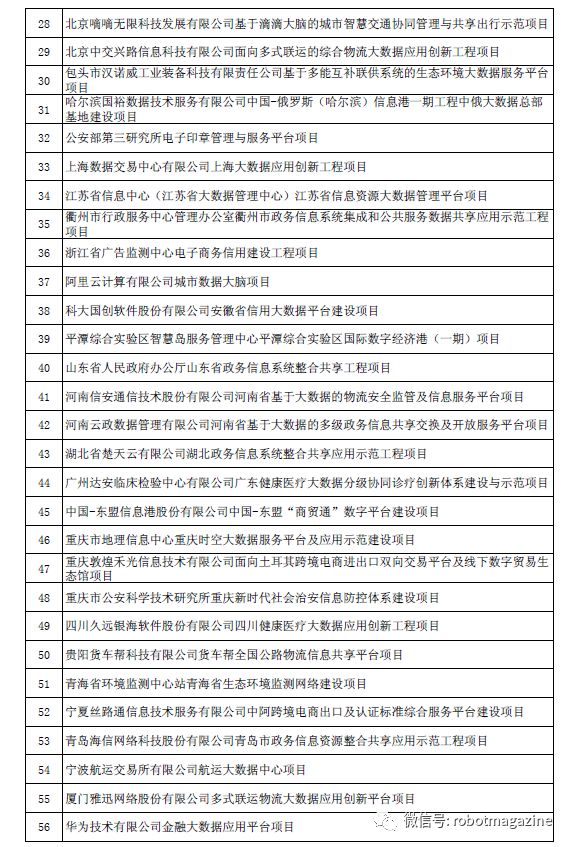 12月27日,国家发展改革委高技术产业司公示了2018年“互联网+”、人工智能创新发展和数字经济试点重大工程拟支持项目名单,共有56个项目入围。