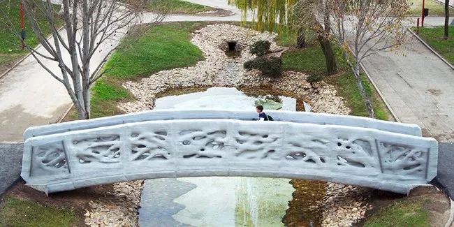 现场3D打印桥梁无需运输和组装,既缩短了建造过程,又减少了水泥的使用量,同时减少了二氧化碳排放,更加环保。