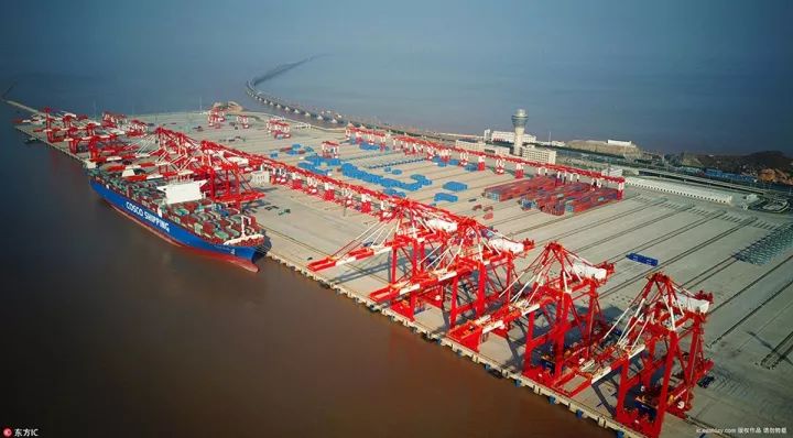 眼光向外,来自长江流域的货物在洋山港集结后,将换上大船沿着海上丝绸之路,被送往东南亚、南亚和欧洲等广大区域。