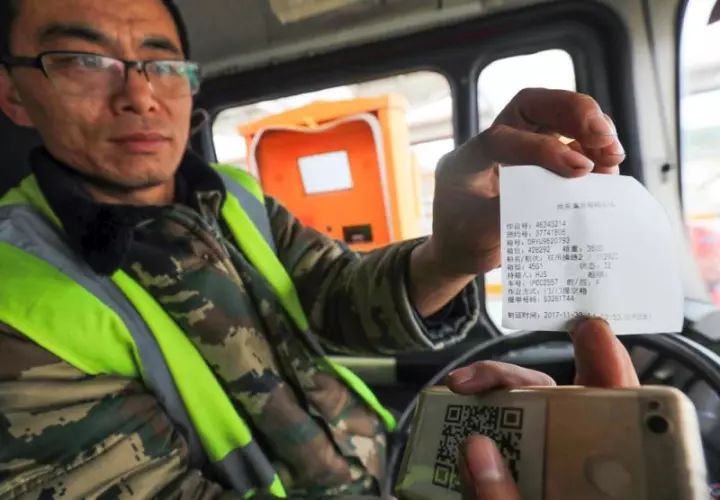 △外集卡司机在分流道口,扫描手机二维码,然后才能进入码头作业并打印出进箱小票