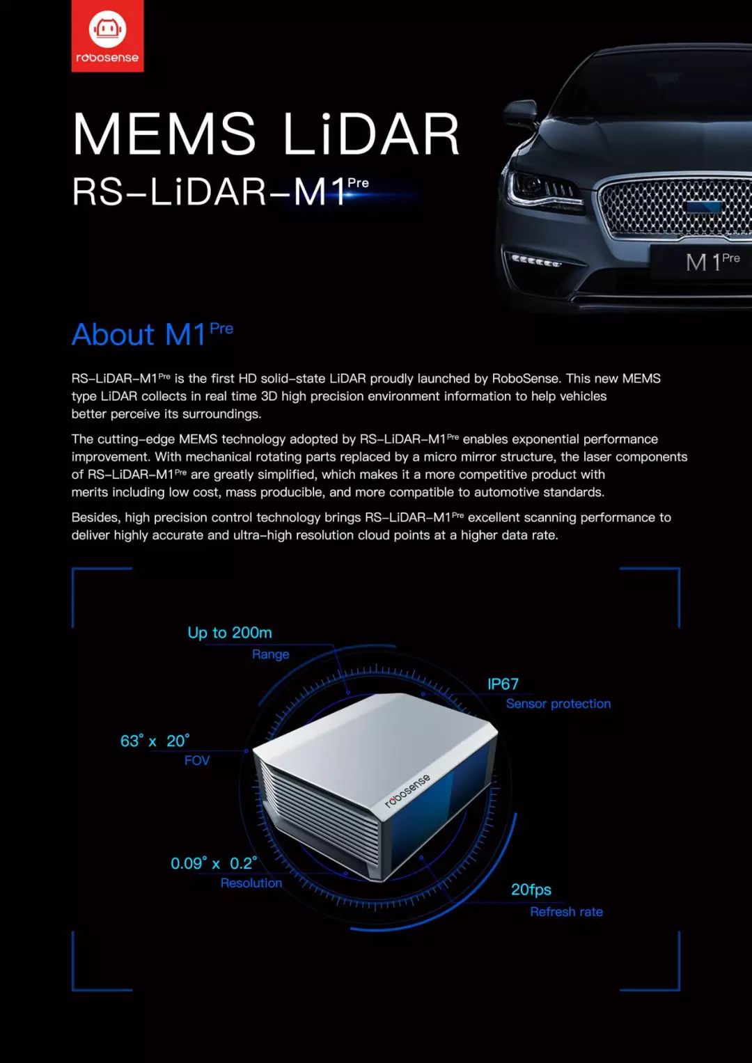 产品应用了先进的MEMS技术,使其性能获得革命性的提升,MEMS微振镜结构替代机械旋转式结构,大大减少激光器的数量,让RS-LiDAR-M1Pre同时具备低成本、易量产、容易通过车规等优势。
