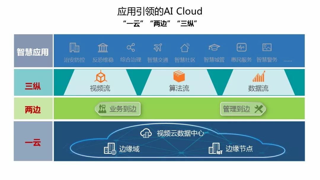 基于平安城市建设发展的进程,一种云边结合的技术框架应运而生,就是AI Cloud框架,它是物联网技术+云计算技术+大数据技术+人工智能技术的高度凝练与结合。
