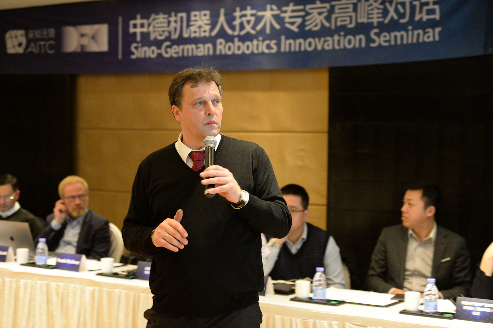 作为深知无限人工智能研究院(AITC)科学家委员会专家,弗兰克·柯什纳教授(Prof. Dr. Frank Kirchner)与深知无限人工智能研究院(AITC)院长、首席科学家汉斯·乌思克尔特教授(Prof. Dr. Hans Uszkoreit)与来自京东集团、海航科技、达晨投资、大连海事大学共同探讨,希望促成更多符合中国本土产业发展需求的先进技术能够在中国落地并实现产业化。