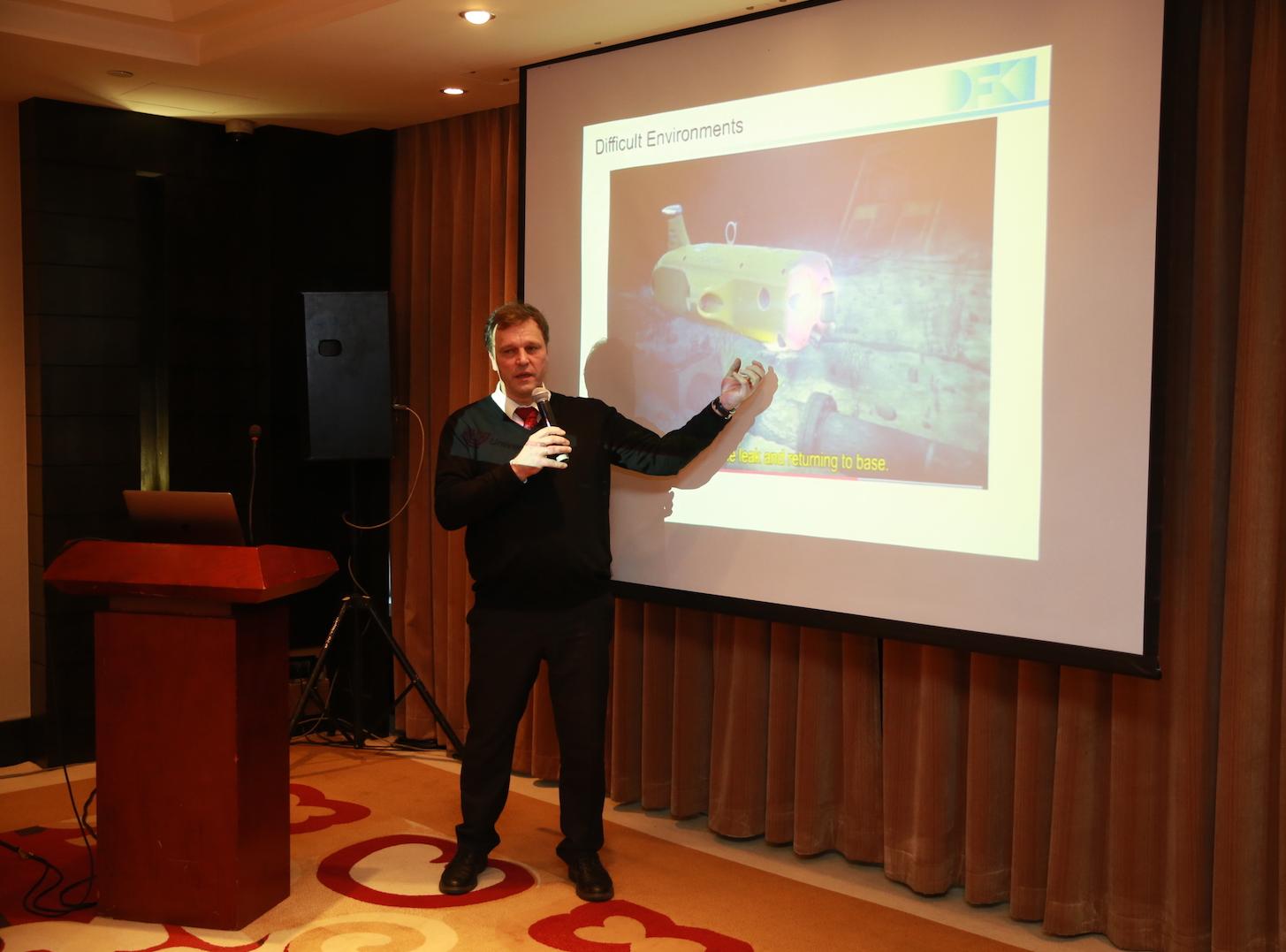 弗兰克·柯什纳教授(Prof. Dr. Frank Kirchner)重点围绕机器人、人工智能技术等领域介绍了德国的最新技术和研究成果,在演讲中针对如何实现研发自动化程度强、敏感性高、人性化的机器人,使人参与到机器人作业环境当中做出解答,他表示,实现人机交互将是实现以上问题的重要方式。同时,对于机器人在今后是否会代替人类,弗兰克教授作出否定的观点表达,他认为未来机器人技术环境乐观,生产力更高,将为人类提供更多就业机会。