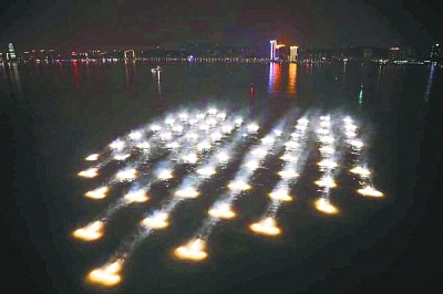 在春晚珠海分会场,一艘7.5米长的“瞭望者”号海洋无人艇带领着80条1.6米长的小型无人船,列队成海上的“离弦之箭”穿过港珠澳大桥。