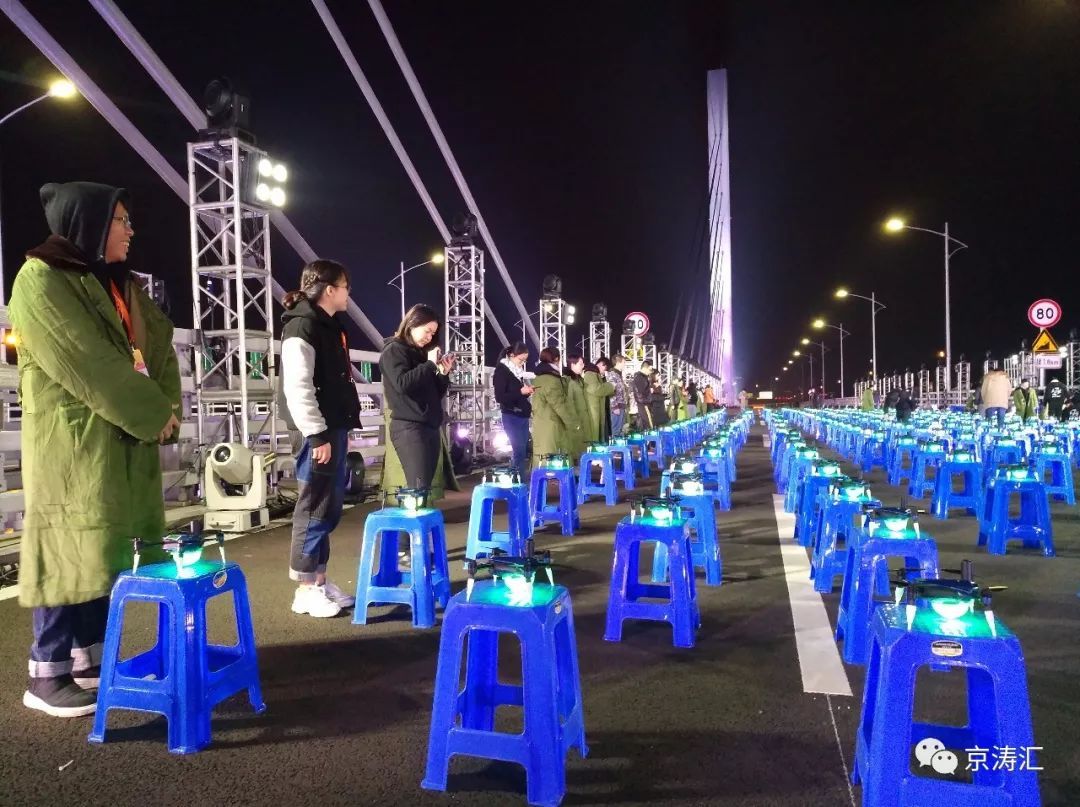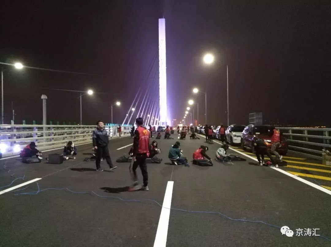 但在没有具备稳定稳定信号条件,且受到桥体本身磁场干扰的港珠澳大桥上,要实现这样的表演,难度超乎想象。”所以志愿者同学们的配合更是尤其重要。