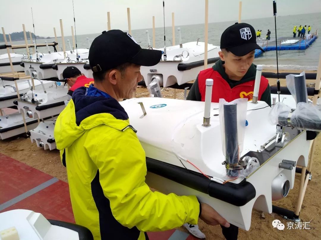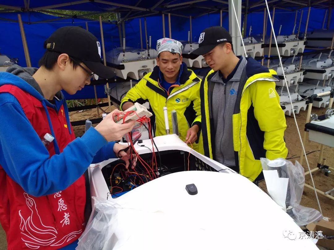 这次春晚,我们学校的志愿者不仅有无人机编队,还有无人船编队。