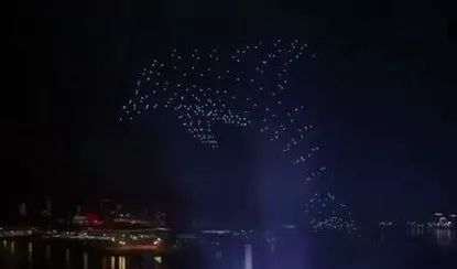 转眼间,无人机变换成海豚跃上夜空;浪漫的烟花在港珠澳大桥绽放,无人艇列阵变成了海浪的模样,点燃着焰火,映衬着宛如海上游龙的港珠澳大桥。
