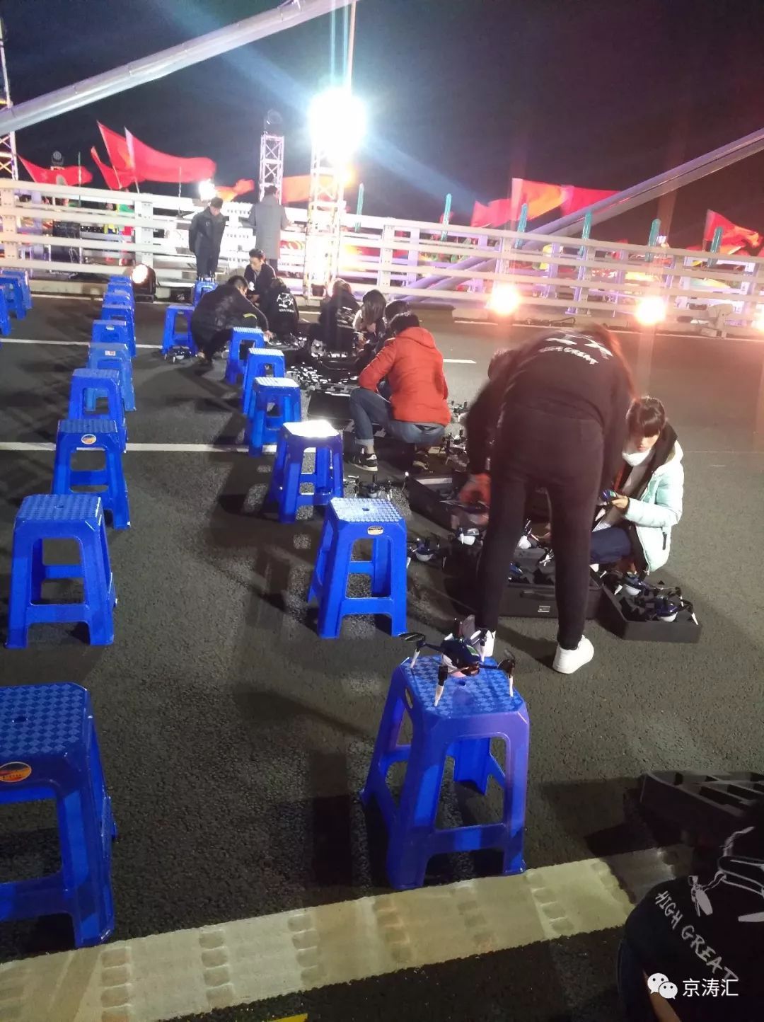 由航空学院任鹏老师带队,一月十九号签订保密协议,二十号前往深圳高巨创新无人机公司参加培训, 二十四到拍摄地港珠澳大桥进行排练,由于受到澳门航空管制和保密性,他们的表演都是在凌晨开始,清晨结束。