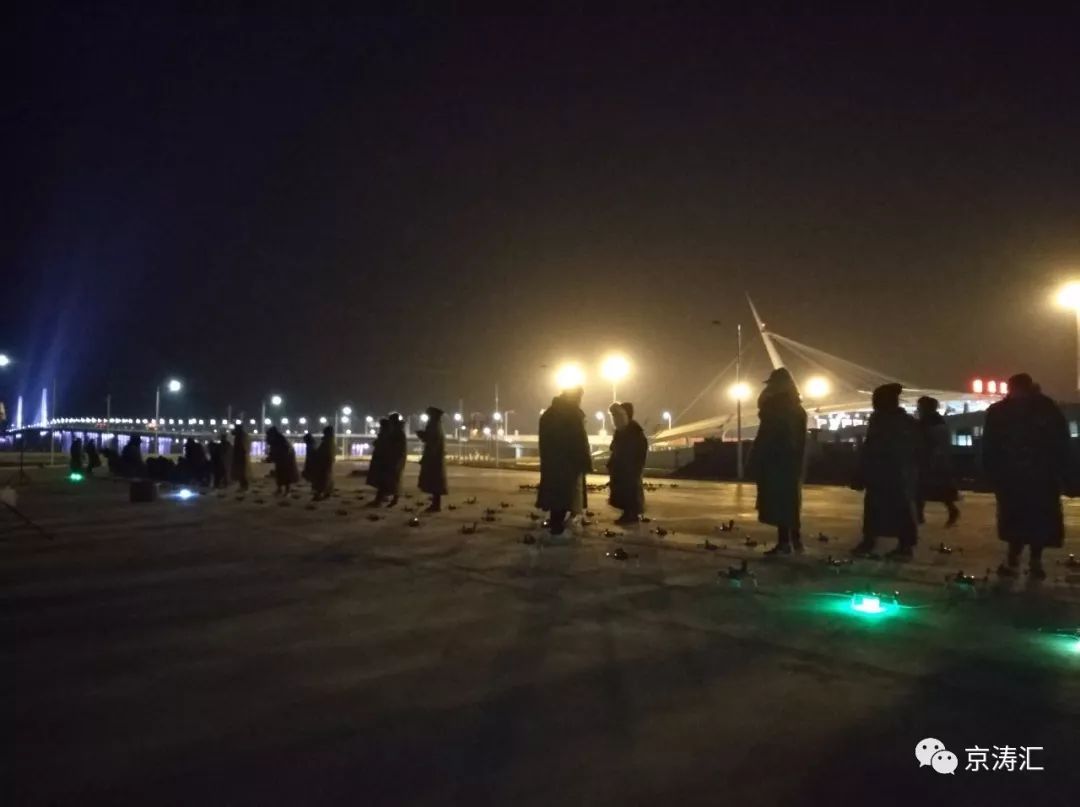 今年的寒潮比往年来得更冷,从晚上9点到凌晨5.30,央视春晚珠海分会场无人机表演志愿分队穿着军大衣,不厌其烦地在排练场地帮忙按顺序摆放三百架无人机,整整22个通宵。