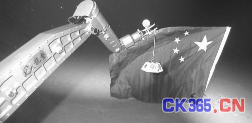 ③深海科考型ROV在海底插国旗、采集沉积物样品和布放标志物。