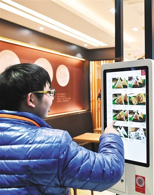 消费者在浙江杭州市首家“无人智慧餐厅”自助点餐。