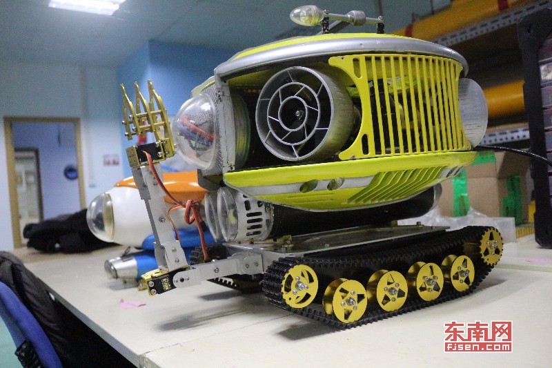 记者注意到,“海棠”号的外型酷似机器人“瓦力”。它的底座是两条驱动履带,上身是黄色,设有排风口,可潜入海底300米深度,总功率达到2400瓦。去年九月,“海棠”号跟随中国科考人员搭乘科考船,前往中国南海的三沙和西沙群岛的蓝洞开展实验和考察。