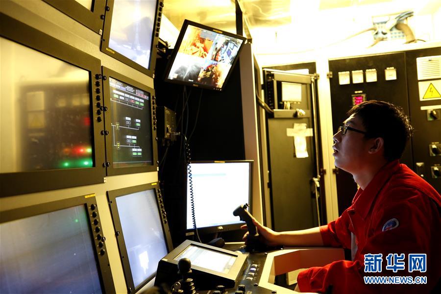 3月16日,“科学”号技术支撑人员吴岳在控制间测试“发现”号ROV各项功能。当日,“科学”号正奔赴西太平洋执行麦哲伦海山科学考察航次任务。为确保“发现”号ROV深海机器人(水下缆控潜器)达到最佳工作状态,技术人员在它正式下海作业前,对它进行了海下1000米的测试。新华社记者 张建松 摄