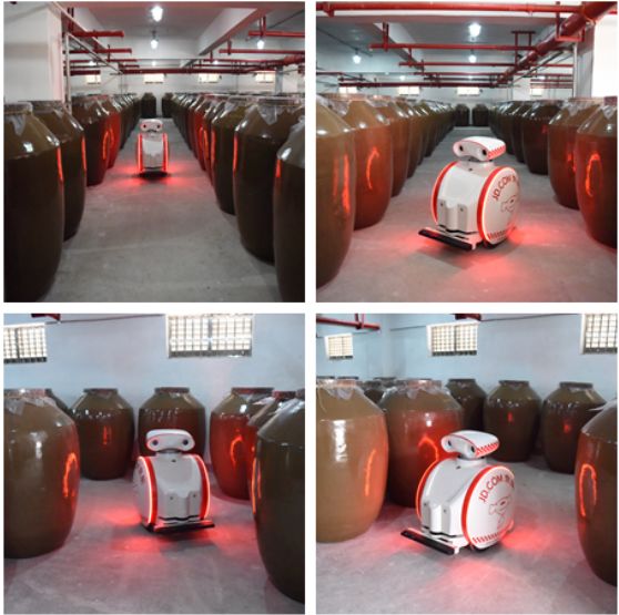 茅台集团此次与京东集团X事业部进行技术交流合作引进的试点项目为仓库巡检机器人。仓库巡检机器人具备环境监测、红外测温、异常火灾预警功能,主要应用于仓库无人巡检,按照事先规划设定好的区域模拟路线图进行动态巡检,实时上报巡检信息,实现智能化巡检需求。主要特点涵盖如下:一是原地360°转向,适应于室内狭小空间运行;二是热红外火灾预警;三是烟雾探测;四是高清360°视频监控;五是本体异常报警,机器人出现导航异常、电量过低等异常报警信息及时反馈到安防管理云平台,实时监测机器人运行状态。