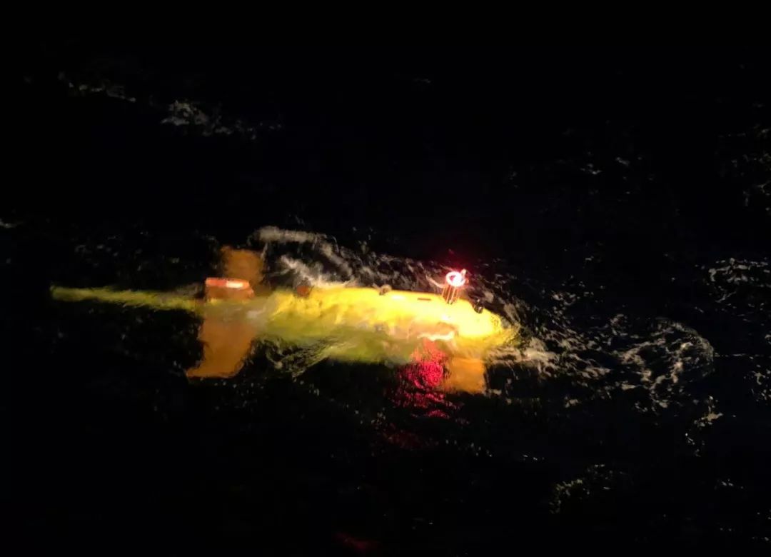 当地时间3月24日晚8点30分左右,西南印度洋海面上夜色低垂,一条黄色的大鱼闪着红色信号灯浮出水面。在科考队员的遥控操作下,它缓缓向“向阳红10”船游来:“潜龙二号”回来了!
