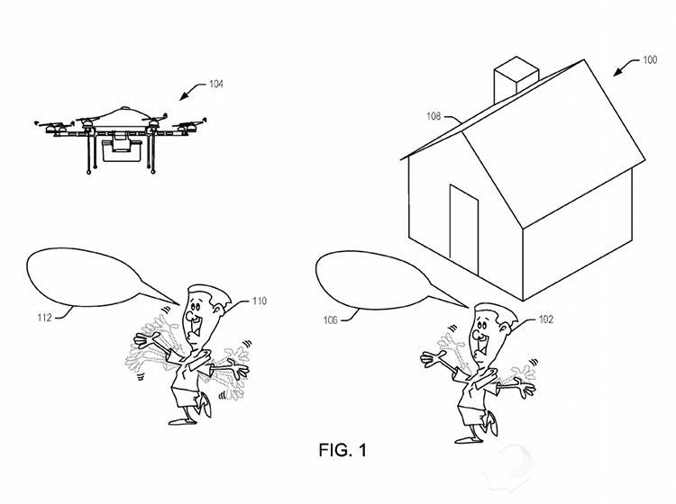 亚马逊提交的专利显示,其运送包裹的无人机将支持手势和语音命令。专利显示,无人机会搭载一系列传感器和摄像头,如光线感应器、距离感应器、可见光摄像头、红外摄像头和听觉感应器等,从而能够识别用户手势和行为做出反应。从描述来看,无人机能够识别挥手、指向、闪过灯光和讲话等(比如专利显示,用户向着无人机疯狂挥手)。