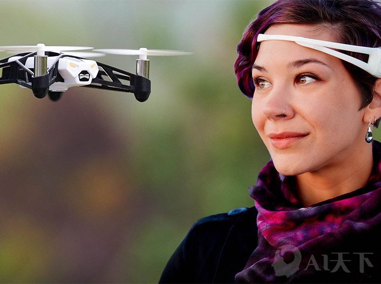 除了手势和语音,无人机还有一种更科幻的控制方式:意念(脑电波)。比如佛罗里达大学进行过一场无人机大赛,要求参赛选手靠意志力让无人机起飞和飞行:选手佩戴EEG头戴设备emotiv,可识别出大脑释放出的电信号,并通过计算机程序进行解码,在之前设定下,相应代码对应着相应命令,从而操控无人机的行为。