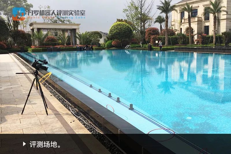 这里我们先介绍一下测试场地的环境。该场地是一个室外游泳池,长30m,宽15m,水深1.3m。它位于高端小区绿城·两江御园内,周围绿树环绕,空气清新,特别是游泳池内水质清澈,呈现出一种令人愉悦的蓝色,非常利于现场拍摄及效果展现。测试当天重庆气温14℃-23℃,微风,天气晴好。