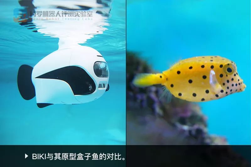 在完成测试准备后,门罗评测工程师们首先对BIKI进行了绕桩的测试,因为鱼本来多是曲线游动。在动力上,BIKI并没有采用水下机器人常用的推进器,而是选择了仿生的尾鳍,通过尾鳍的左右摆动实现前进和左右转向。同时,它的游动姿态也参考了真实鱼类的动作细节,并进行了高度还原。