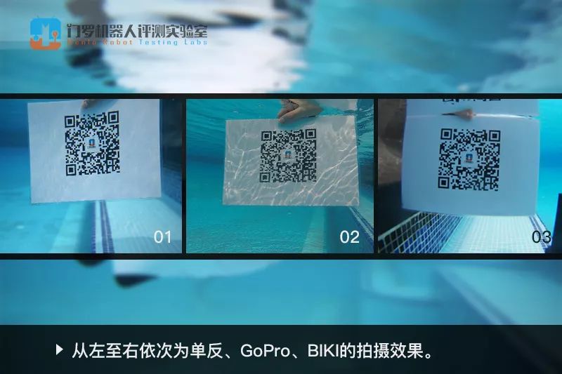 究其原因,第一,“静态”拍摄我们是从用户的实际操作方式出发:单反相机和GoPro在水中大家都是手持拍摄,有固定点;BIKI是自由悬浮在水中拍摄,会随水体轻微摇晃,没有固定点——毕竟没有用户会手持BIKI进行拍摄。第二,我们发现虽然BIKI内置了摄像头的转动、平衡与防抖装置,但我们只能通过调整鱼头方向来变换取景角度,不能手动控制摄像头的转动及对焦。