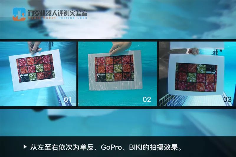在运动之后,就是BIKI的拍摄能力了。单从它的摄像头参数来看,1600万像素以及4K视频拍摄已经达到了目前智能手机摄像头的主流水平,拍摄能力想必不会太差。但参数仅仅是一个方面,实际在水中的应用效果才能体现出真实的情况。于是,门罗评测工程师们决定让BIKI与佳能5D Mark Ⅲ单反相机、GoPro进行一场静态拍摄的PK:通过在水下相同距离拍摄同一图片来展现三位“选手”成像的细节。(从硬件来看不同的拍摄装备不应对比,但从应用来看现阶段消费级的水下拍摄应用主要就是靠它们。)