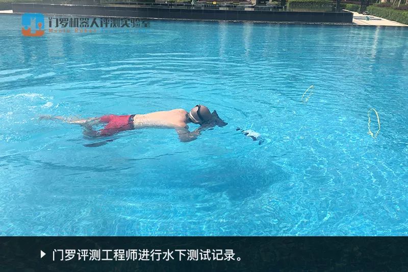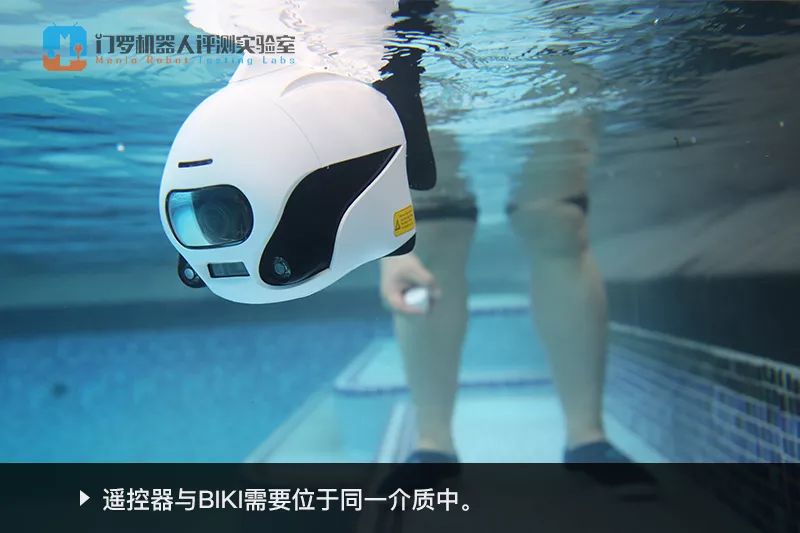 在完成前面的四项运动测试之后,门罗评测工程师们还加了一个伴游测试的项目,以检验BIKI在与人共游期间的运动能力。从测试结果来看,BIKI在有效的操控距离内,对遥控器的响应比较灵敏,但也存在个别不听指挥的情况。我们认为,其原因在于人在游动的过程中产生的水波会对声波的传输和接收造成影响,而且这个波动也会影响BIKI在水下的姿态,从而造成操控不灵敏。