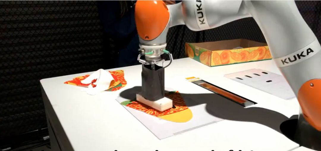 机智的小伙伴一定认出来了吧,TA 就是 KUKA LBR iiwa 。生产中,TA 负责温度很高的烫印工作,以高速度和高精度协助人们完成运动鞋制作的一部分。