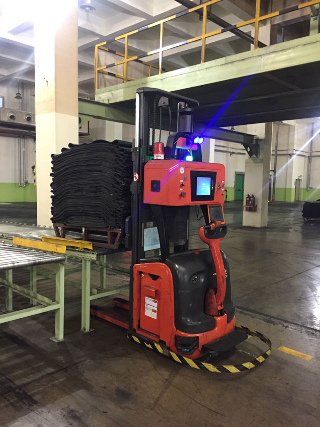 本项目是某橡胶轮胎集团联合国内外知名设备供应商打造的一条示范性、标杆性自动化生产线。本项目共有AGV10台,主要实行两大功能:一是通过扫码,提取该车在数据中的信息,包括班次、所属机位,以及对应库存区位置,然后通过估计,上位机识别提取到的信息,送到相应库存位。二是循环路线,从开始挂上空车,然后走机台路线收半成品,然后送至剪修台放下,挂上已剪修好的料车,运送到检验处放下料车,然后再去空车位挂上空车,进入下个循环。目前国际化的竞争日渐激烈,所以需要从整体上提高自身的竞争力,从物料、生产、成品的转运等方面全面提升全面改革。