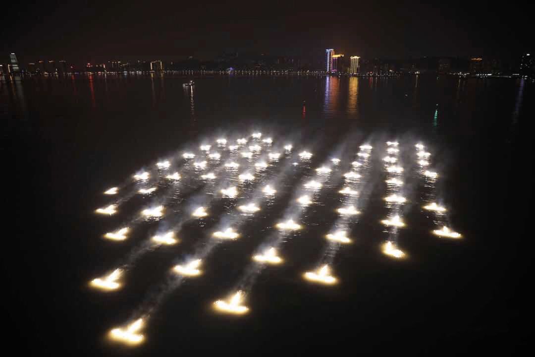 对于云洲的技术团队而言,81条无人船同时协同运行在产业中是前所未有的。本次演出的现场环境属于三级海况,既要满足队形变换,又要避免碰撞,难度和挑战是非常高的。