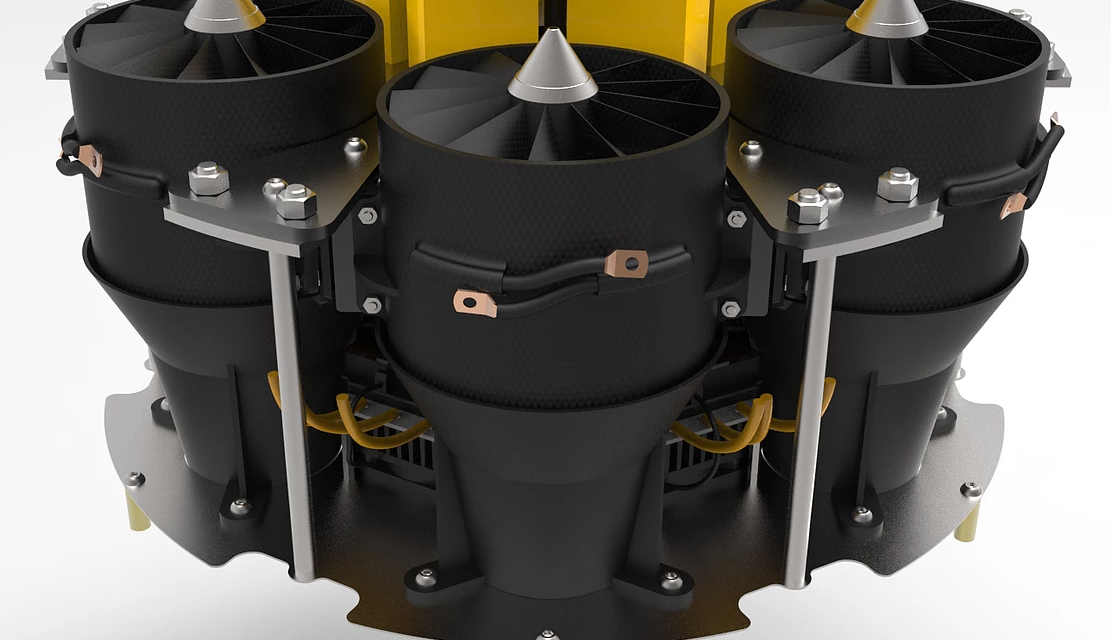 这种无人机呈圆筒状,由汽油发动机驱动6个涵道提供升力和调整姿态的螺旋桨。无人机的直径为63英寸(160厘米),高度为20英寸(50.8厘米)。该无人机系统集成了热像仪和导航系统,为消防员提供有关地形、大气条件和其他数据的实时信息。