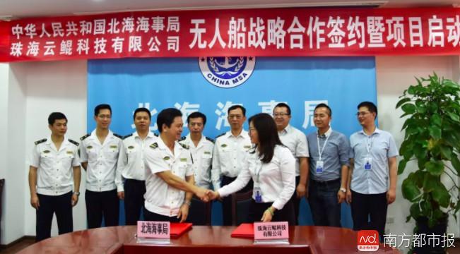 中国北海海事局与珠海云鲲科技有限公司无人船合作协议近日在北海海事局正式签约。记者获悉,双方合作既开启了实现“智慧海事”以及公务无人船在海事监管领域中应用的先河,同时也标志着珠海无人船制造业的新商业模式启动。