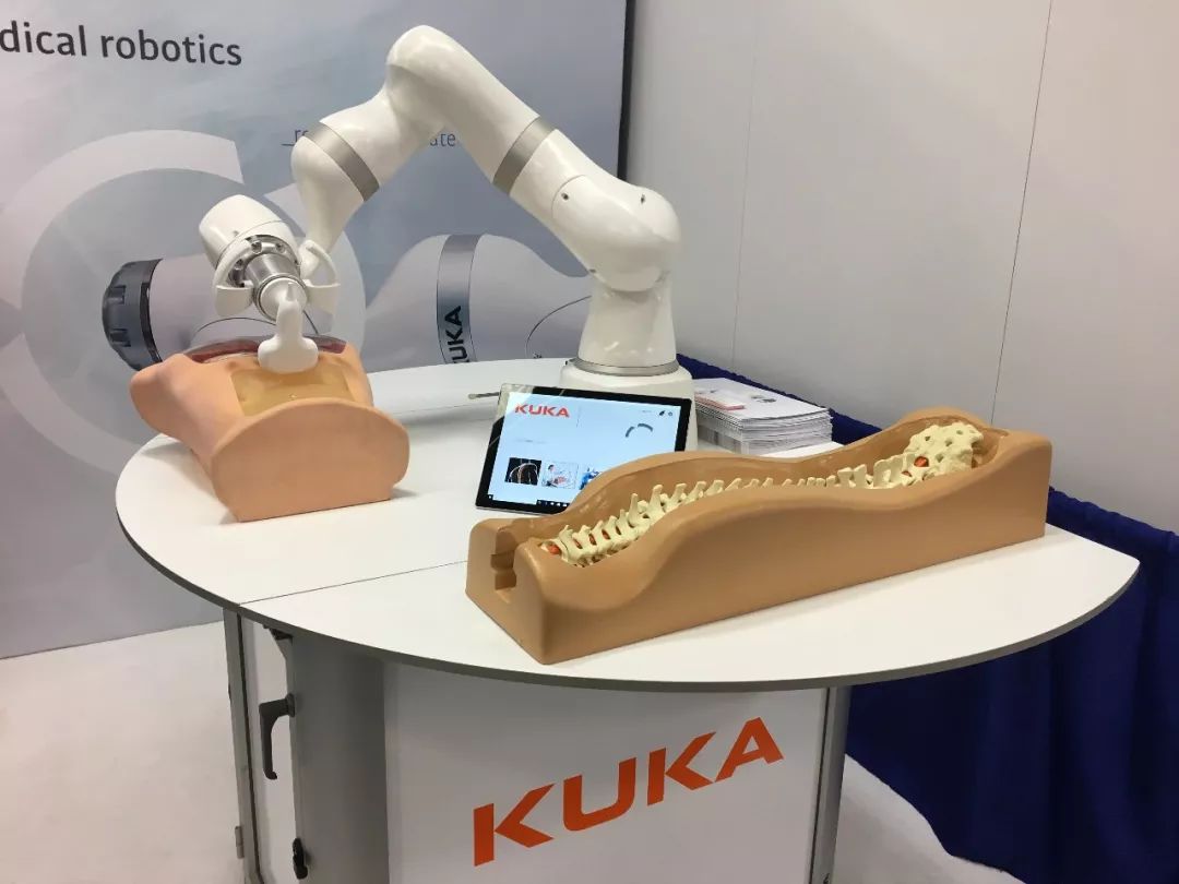 在微创手术的演示中,轻型机器人配有一个长长的手术器具,通过内窥镜而导入体内。机器人对切入点加以储存,并使医生能围绕该切点手动移动机器人,而不对切点施加力。这有助于在手术中最大限度地减少对病人的伤害。 对这一及其他应用实例,观众可在中国国际医疗器械博览会 5.1 号馆 A01 的 KUKA 展台上进行亲身体验。