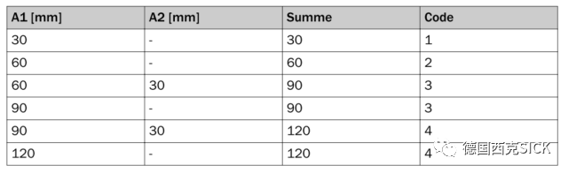 通过磁块标记距离导航磁条中心的距离来表现不同的代码,如下表