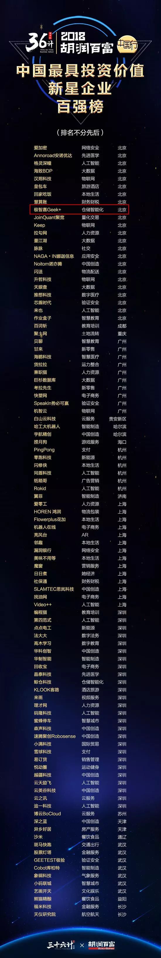 Geek+在入选中国胡润百富榜最具投资价值企业北京50强后,在今日的全国评选中,成功跻身胡润百富榜中国最具投资价值企业百强榜。值得一提的是,Geek+是唯一入榜的仓储机器人企业。